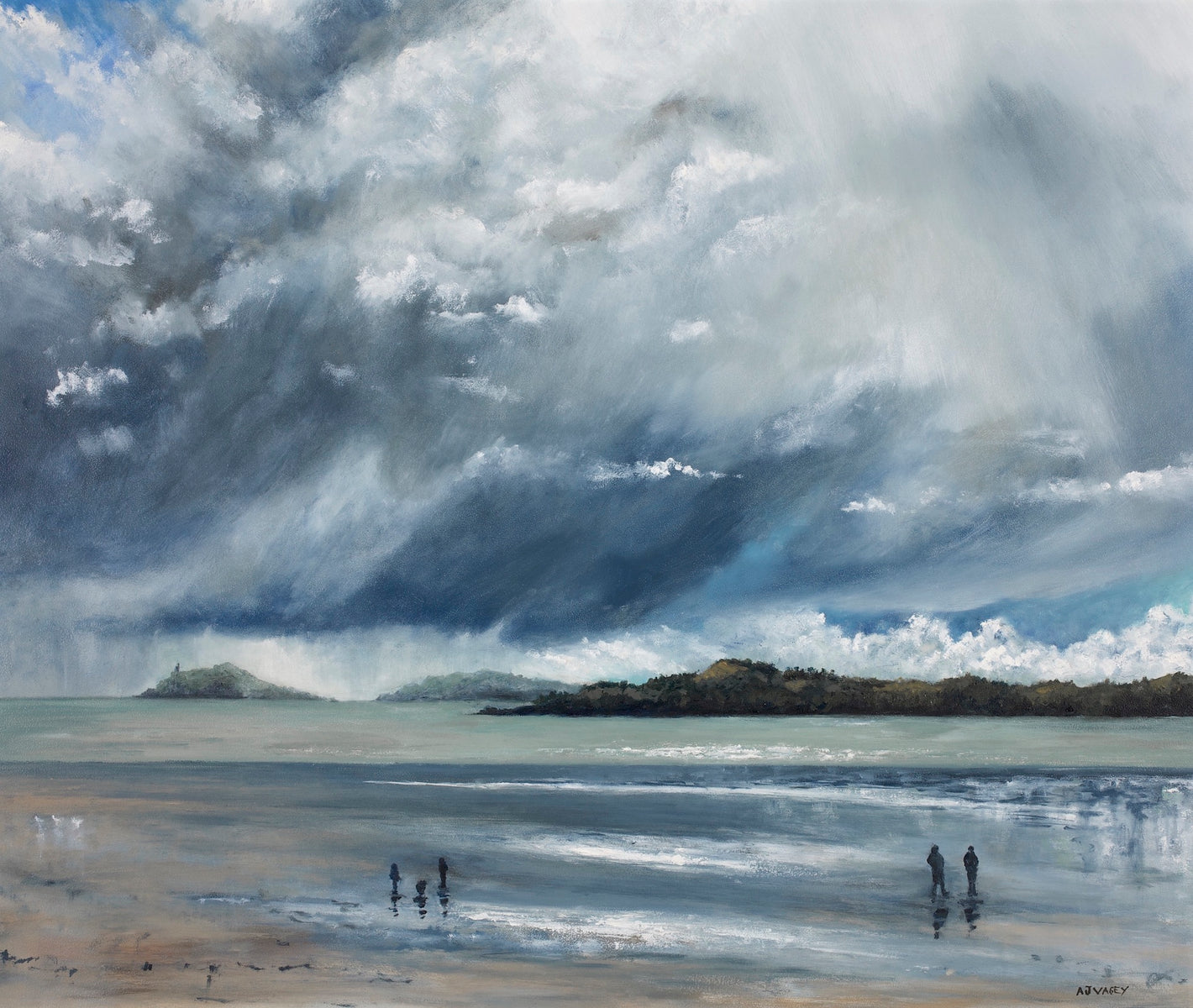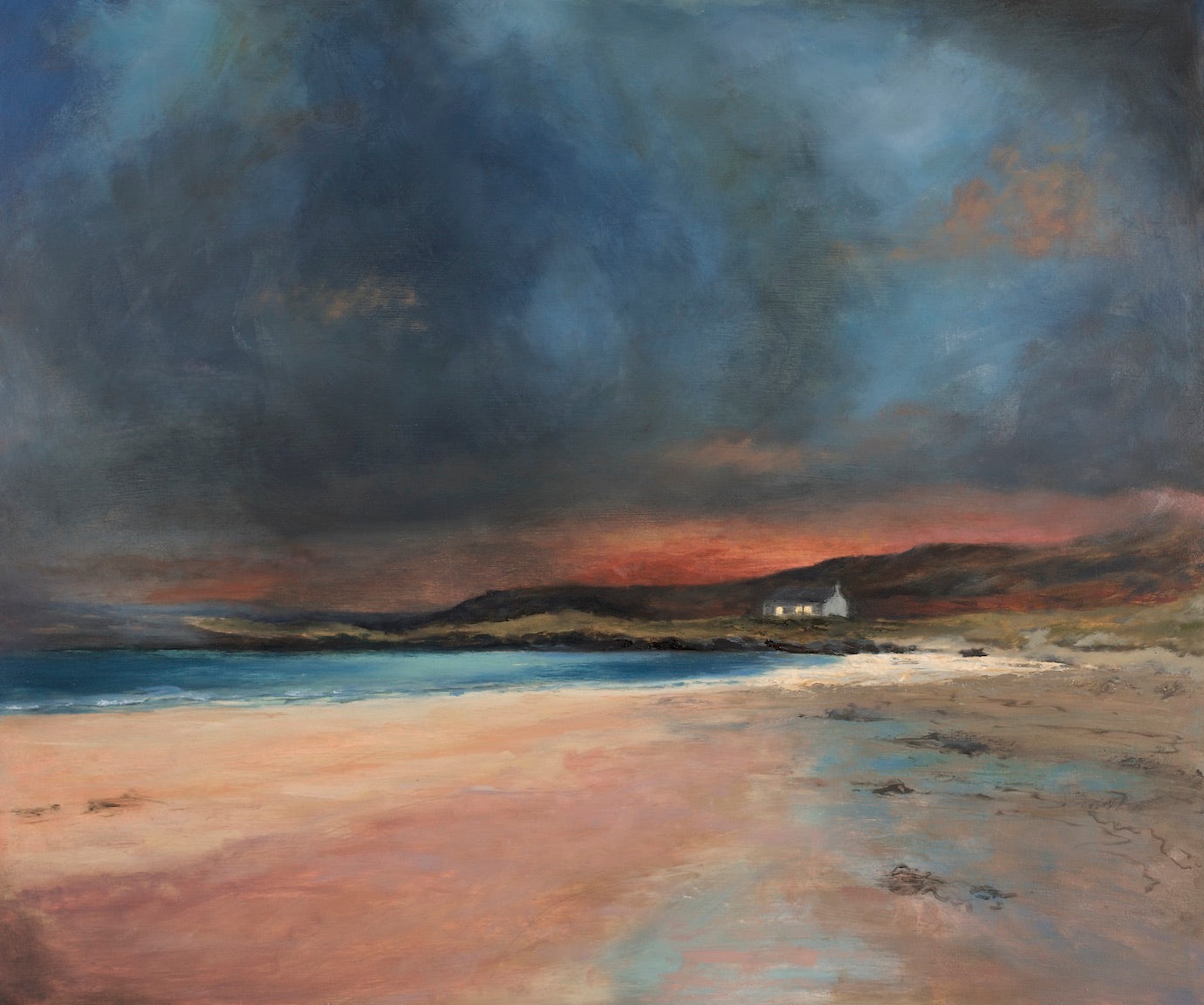 "Alison is a painter of gathering thunder clouds and lyrical orange tinged sunsets. She imbues her canvas with a marvellous sense of space and place. You can almost feel the wind whipping sand around your ankles such is her way with representing the spirit of the places she paints." Catriona Hall